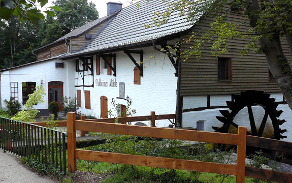 3 Dalheimer Mühle![]() Het gebied rondom Dalheim-Rödgen is bijna geheel bedekt met bos, heide en moerasland. De Dalheimermühle, waarvan het gebouw gedeeltelijk in vakwerkstijl is opgebouwd, is één van de drie watermolens in de Roode Beek en dateert uit 1775. Voordat de Roode Beek uitmondt in de Roer, doet de beek nog de Gitstappermolen en Vlodroppermolen in Roerdalen aan. De Dalheimer Mühle is tegenwoordig een horecagelegenheid en een ideaal rustpunt tijdens de IJzeren-Rijnwandeling.